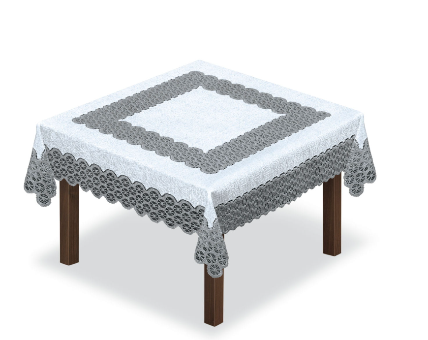 Obrus z interesującym motywem, łączący ze sobą dwa style. W centralnym miejscu prosty gładki, natomiast po bokach przeplata się finezyjny haft, przypominający bogate zdobnictwo. Biało-szary kolor świetnie sprawdzi się na każdej okazji, dodając elegancji i subtelności dekoracji stołu oraz będzie świetnym dopełnieniem wystroju pomieszczenia. Bardzo łatwy w utrzymaniu – doskonale się pierze i nie pozostają na nim najmniejsze ślady zanieczyszczeń.