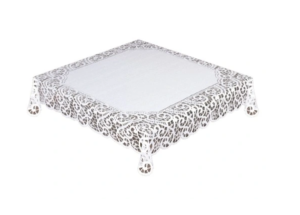 Obrus z interesującym motywem, łączący ze sobą dwa style. W centralnym miejscu prosty gładki, natomiast po bokach przeplata się finezyjny haft, przypominający bogate zdobnictwo. Biały kolor świetnie sprawdzi się na każdej okazji, dodając elegancji i subtelności dekoracji stołu oraz będzie świetnym dopełnieniem wystroju pomieszczenia. Bardzo łatwy w utrzymaniu – doskonale się pierze i nie pozostają na nim najmniejsze ślady zanieczyszczeń.