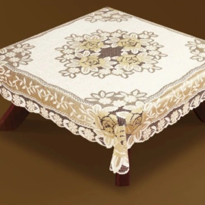 Obrus z interesującym motywem, łączący ze sobą dwa style. W centralnym miejscu prosty gładki, natomiast po bokach przeplata się finezyjny haft, przypominający bogate zdobnictwo. Kremowy kolor świetnie sprawdzi się na każdej okazji, dodając elegancji i subtelności dekoracji stołu oraz będzie świetnym dopełnieniem wystroju pomieszczenia. Bardzo łatwy w utrzymaniu – doskonale się pierze i nie pozostają na nim najmniejsze ślady zanieczyszczeń.
